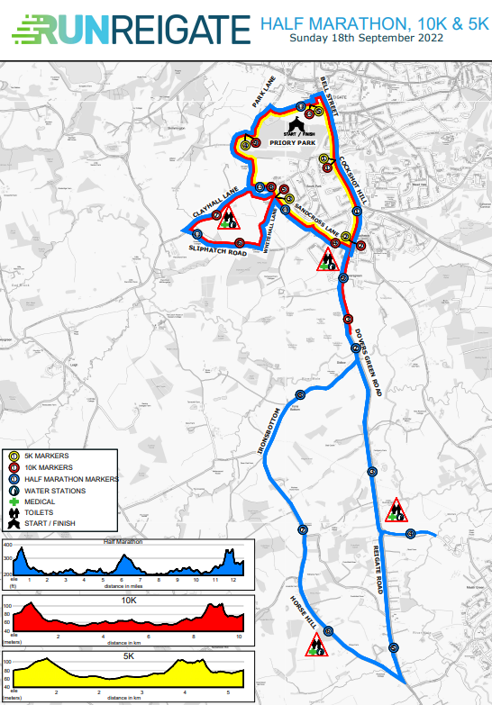 The following roads will be closed on 18th September, from 08:30am - 13:30pm, for the Reigate Run Half Marathon, 10K and 5K: