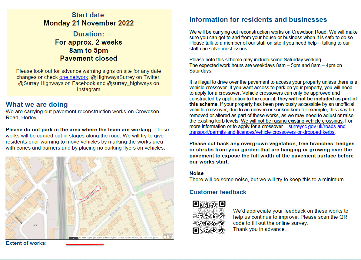 Pavement Closed - Crewdson Road, Horley - Reconstruction