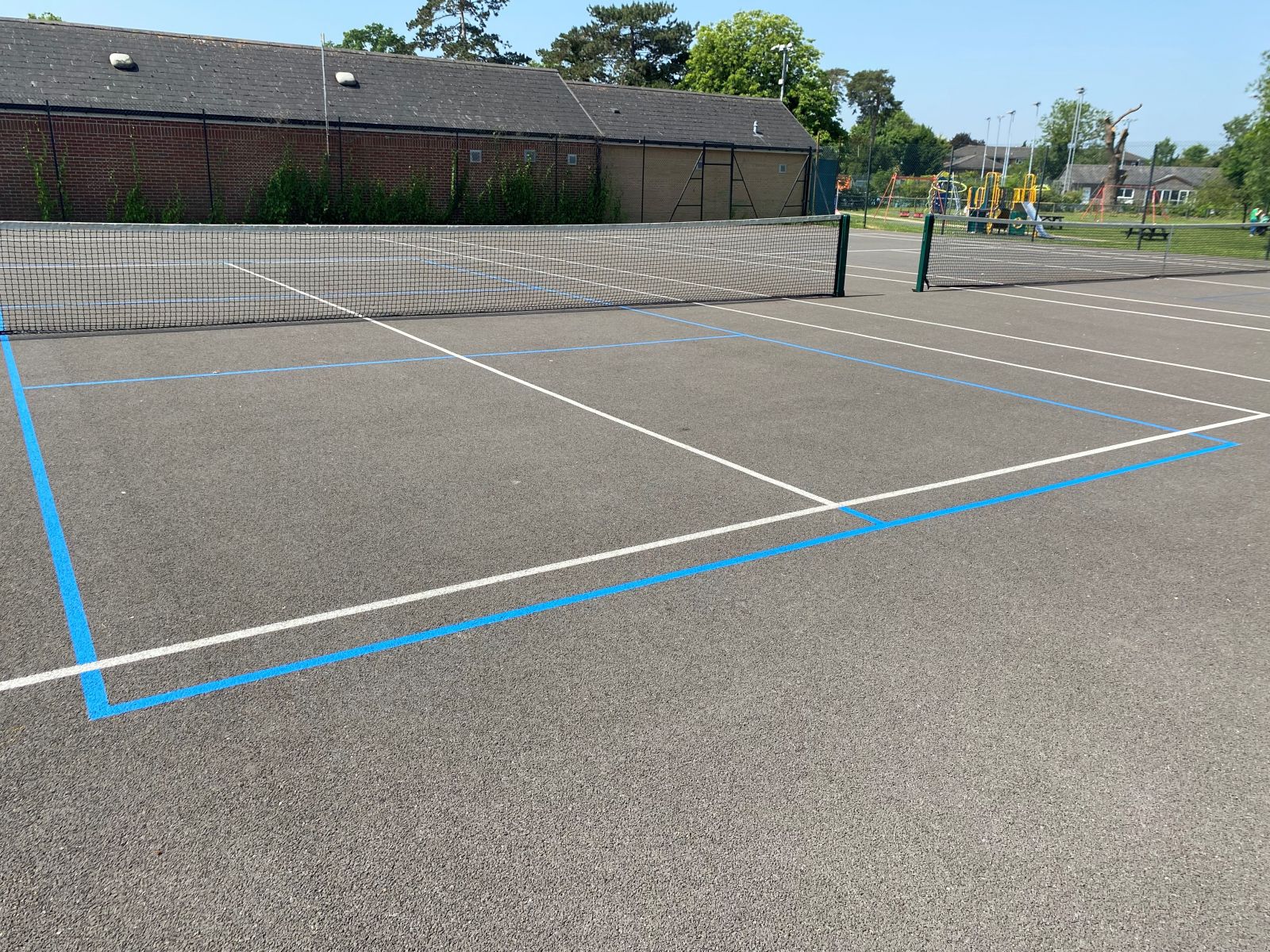 This weekend a second tennis court was overlaid with pickleball lines. Horley Lions were approached for funding by local pickleballers and agreed to pay for the line markings. Pickleball is one of the fastest growing sports in the US and is growing in popularity in the UK. It's best described as a combination of badminton, ping-pong and tennis. The smaller courts and slower balls mean it can be played by people with a bigger range of mobility and fitness. Horley Lions are hoping to use their funds to encourage health and well-being, combat loneliness, provide support for good mental health and inclusion.
