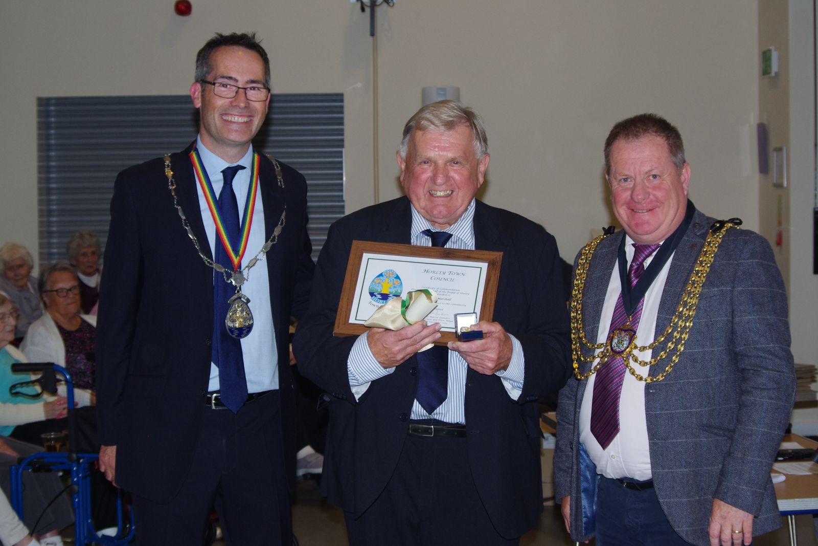 Below: Horley Town Mayor, Martin Saunders, Simon Marshall and Reigate & Banstead Mayor, Cllr Eddy Humphreys