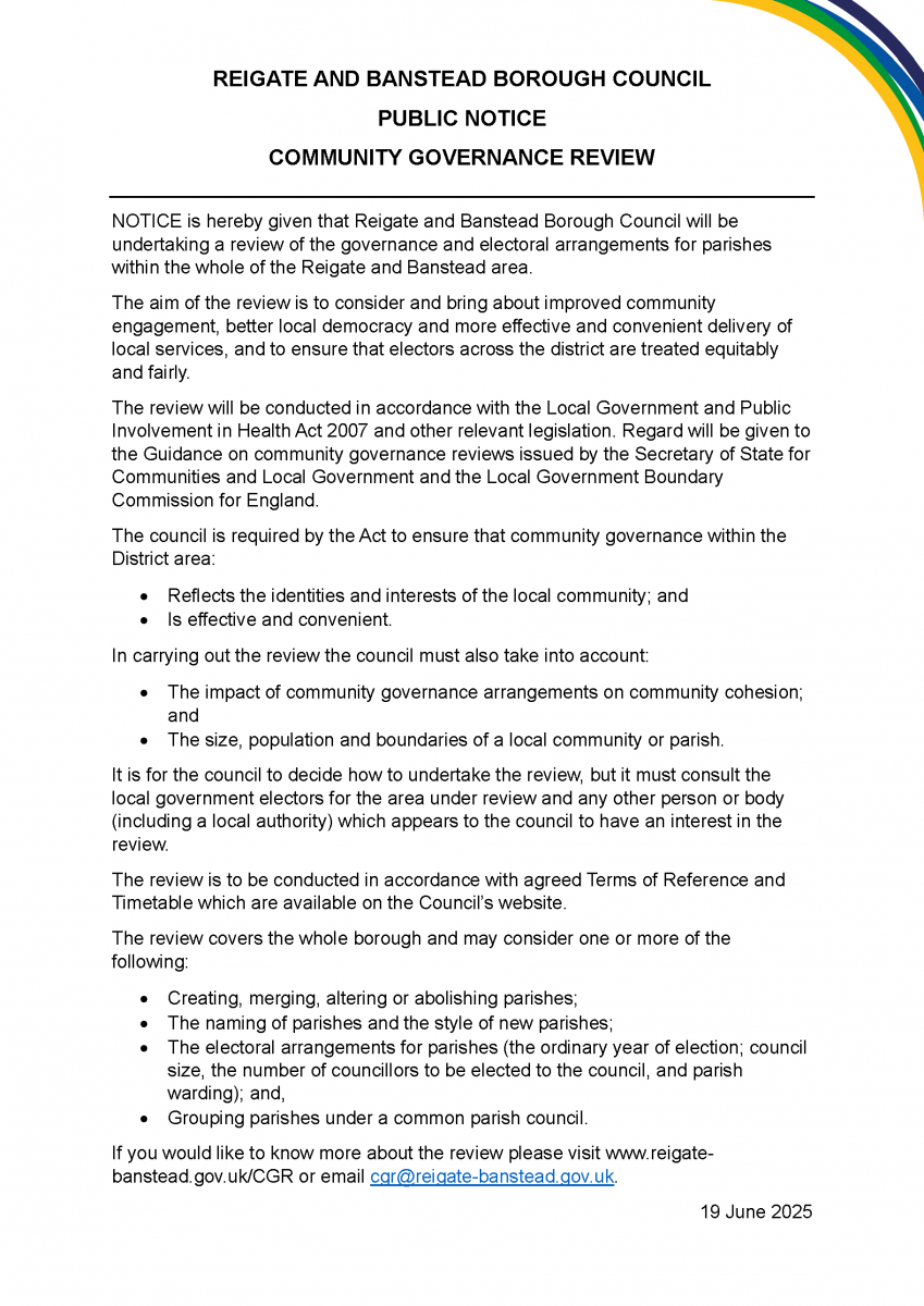 Reigate And Banstead Borough Council Public Notice Community Governance Review